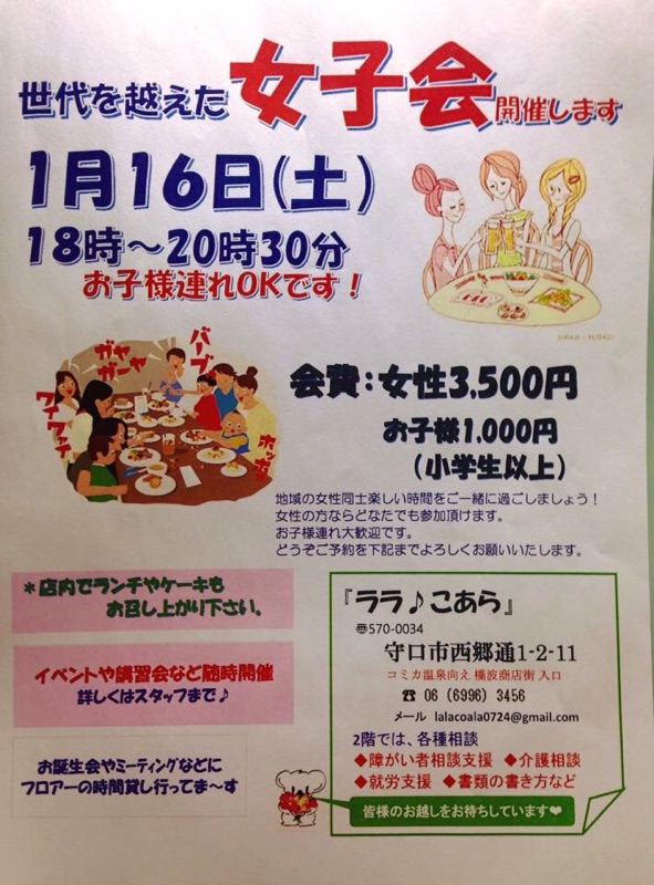 地域コミュニティーセンター『ララ♪こあら』にて、職員手作りの料理で女子会開催